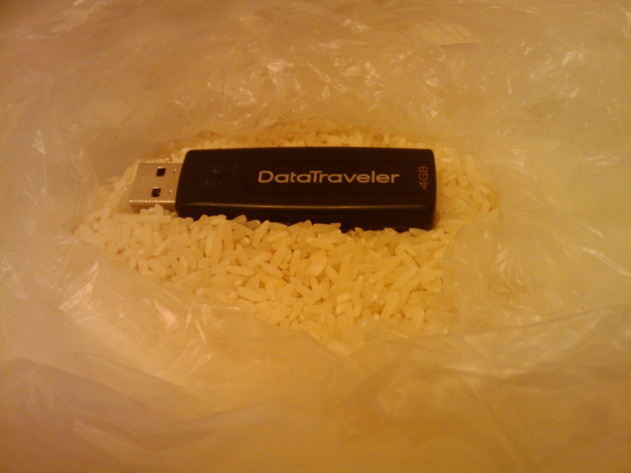 Esperas unos días para darle tiempo a que se seque por dentro y el arroz se quede con la humedad que quede dentro de la memoria.